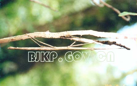 图B 竹节虫 Phraortes sp. (2000-9-6摄于台湾福山植物园)。