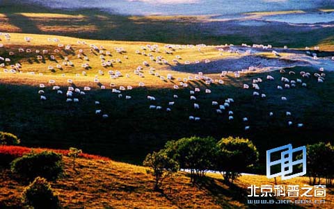 作品说明在夕阳下,百余只牧归羊群象草原上颗颗珍珠。此照片是2005年10月摄于河北承德红山军马场东沟景区。