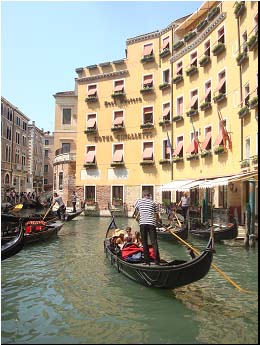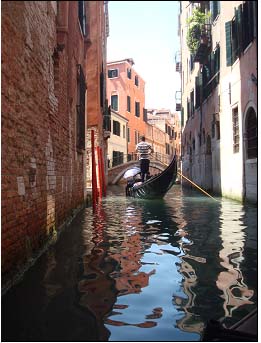 乘着轻捷的贡多拉,游人走街串巷,观赏风景;当地人运送货物,走亲访友,怀抱圣经去教堂。 |