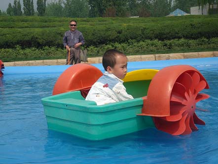 孩子们难改喜水的天性(大人们又何尝不是哩!)于是在人造的湛蓝湛蓝的水池里孤独地划船,爷爷奶奶们在“岸”上开心地看着他们的宝贝。