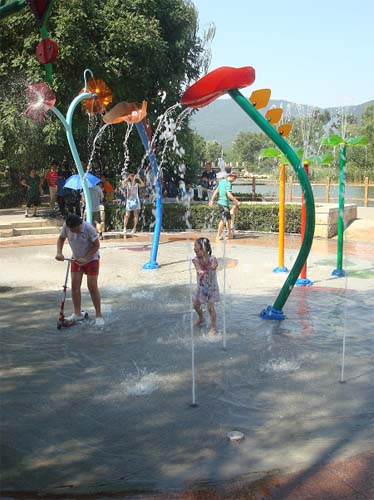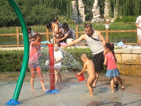 北京植物园北园里,有一处喷泉与众不同,孩子们在这里非常快乐,因为他们可以身临其境,与水共舞。九月一日已是开学的日子,还是个星期天,不少家长带着学龄前的孩子前来戏水。