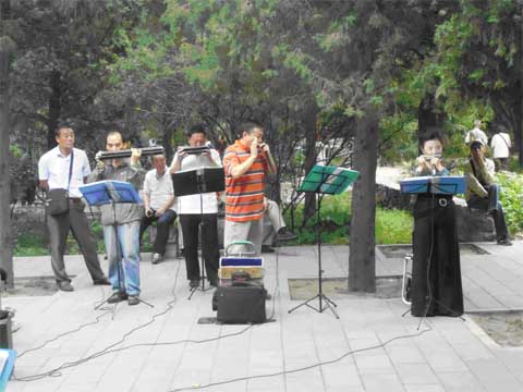 景山在市中心,不高,是一座人造的山,因为明朝那些事在这里画了句号,所以游人如织。如今这里是群众歌咏的圣地,诞生过“激情广场”电视节目,扬名海内外。