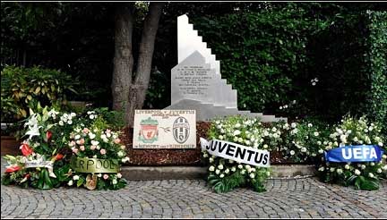 该是掀过这痛苦一页的时候了。2005年3月22日,比利时布鲁塞尔市政府宣布,将建造一座“日晷”雕塑,以纪念20年前的惨案。这个60平方米的雕塑,有39盏灯,象征着遇难的39名球迷。雕塑的设计者、法国人里穆克斯说,安放在重修过的海瑟尔体育场外的这座不锈钢雕塑,配有意大利和比利时的石头和一首英格兰的诗,以表达这三个民族的悲痛,是对那场惨案的纪念,“不能忘记”的意思。雕塑的详细设计在4月份的记者招待会上公布,5月29日揭幕。雕塑上刻有英格兰诗人奥登的《蓝色的葬礼》的诗句,这首诗曾在电影《四个婚礼和一个葬礼》中被引用过。