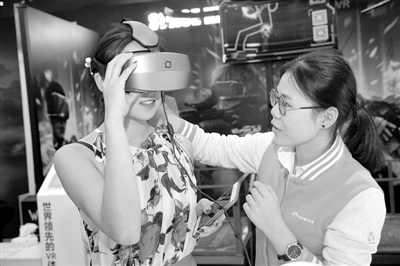 消费者在乐语Funtalk北京爱琴海店的VR体验区体验“新奇特”。 李禾摄