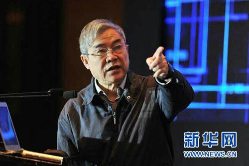 中国工程院院士、宽带发展联盟理事长邬贺铨做主旨报告。新华网 孙韬 摄