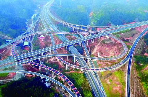 1月17日航拍的连接沪渝、恩黔、恩来、恩建等高速公路的罗针田互通桥梁。