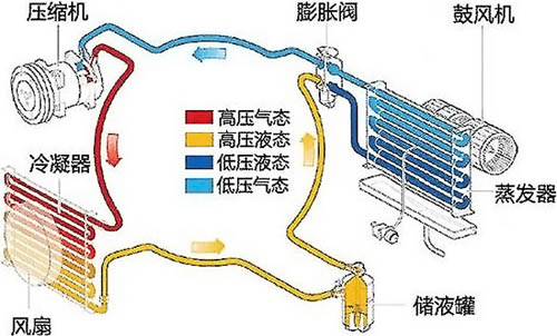 一般来说,空调主要由压缩机、冷凝器、蒸发器、四通阀和毛细管这些器件构成,当然,其中还少不了一种物质——气态制冷剂,在空调工作的过程中,制冷剂扮演的角色就是制冷剂。