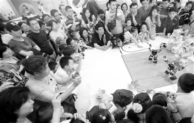 观众在科技周现场观看机器人表演