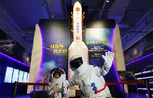 日前,首次将太空探索和武器研发成果联合展出的《从远古到无穷——趣味航天文化展》在周口店遗址博物馆开展,为广大观众搭建了一个航天科技梦工厂。展览及现场活动将持续到6月30日。展览由周口店遗址博物馆与中国航天科工三院310所联合举办。图为观众体验宇航员太空服。 (本报记者王卉报道)