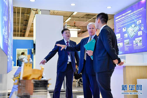 6月19日,在法国巴黎近郊的布尔歇,来宾参观中国航天科技集团公司所属中国长城工业集团有限公司展位。