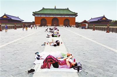 位于北京天坛公园祈年殿前的丹陛桥,是一个由汉白玉铺就的平台,长360米、宽30米,因其下面有两孔涵洞而称桥。然而就是这个步道平台,每到盛夏,总会有人横七竖八地或坐或卧在上面。这些人把这里称作“中华神床”,认为躺在上面能治病强身。而且这种现象已经存在了10年之久。然而,丹陛桥真的有这么神奇的功效吗?
