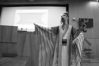 7月10日,为纪念中医针灸列入人类非物质文化遗产代表作名录,联合国教科文巴黎总部举行《中医药文化讲座》,热爱中国文化和对中医感兴趣的各国友人近200人参加了活动。图为北京中医药大学学生在现场表演融合了中医理论、以艺术为载体创作的校园舞蹈诗《岐黄志》。该舞蹈诗还将在巴黎议会宫和枫丹白露剧场举行公演。