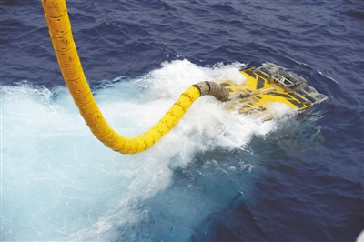 8月14日,“发现”号遥控无人潜水器入水考察卡罗琳海山。新华社记者 张旭东摄