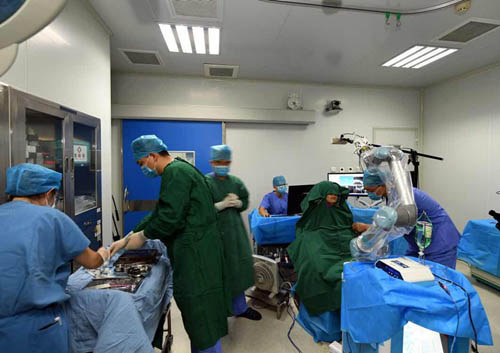 2013年,在我国著名口腔修复学专家赵铱民教授及其团队主导下, 空军军医大学口腔医院与北京航空航天大学机器人研究所立项,共同研发种植牙机器人。他们研究了一种无需空间配准的机械式空间融合定位方法,突破了机器人配准操作复杂的瓶颈技术,实现了高精度空间定位,设计出自主式种植牙手术机器人构型,能在空间狭小的口内灵活地完成手术操作。开发出口腔种植规划-手术导航-机器人控制软件系统,实现了个性化种植方案精准规划、术中全程导航与机器人自主控制。在多次动物实验基础上,建立了口腔种植手术机器人临床工作程序,完成了缺牙患者的种植即刻修复,降低了手术难度,提高了手术效果。与传统方法相比,种植牙机器人具有精准、高效、微创、安全等优点。
