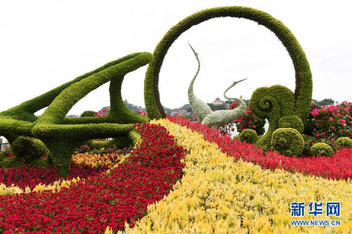 这是厦门轮渡音乐喷泉广场上由“白鹭”“钢琴”和“浪花”等组成的花坛(9月2日摄)。