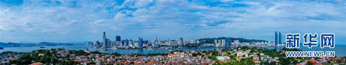 从鼓浪屿日光岩远眺厦门岛(拼接照片,9月1日摄)。