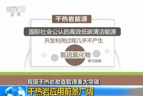 干热岩能源是国际社会公认的高效低碳清洁能源,科研人员解释,主要通过注入凉水,吸收岩体热量转化成蒸汽,再抽取到地表进行利用,其开发利用的过程中几乎不产生氮硫氧化物等污染物,不会出现其他环境问题,也不受到过多的环境因素影响。