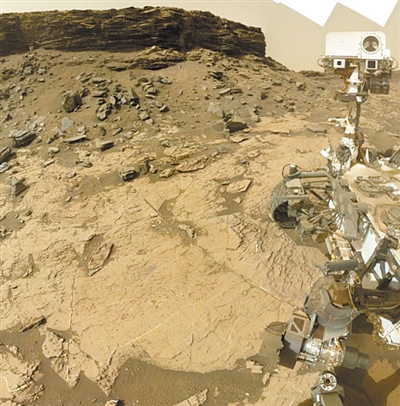 “好奇”号在发现硼酸盐的位置来了张“自拍”。来源:NASA官网